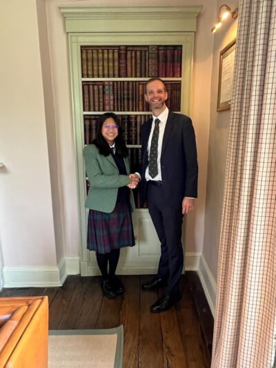ตอนนี้หนูกำลัง เรียนต่อมัธยมต่างประเทศ ที่ Oswestry School ซึ่งตั้งอยู่ในเมือง Oswestry ประเทศอังกฤษ โรงเรียนนี้น่ารักมากค่ะ สังคมอบอุ่น ทั้งเพื่อนๆ คุณครู และคนในเมือง ทุกคนเป็นกันเองและพร้อมช่วยเหลือเสมอ